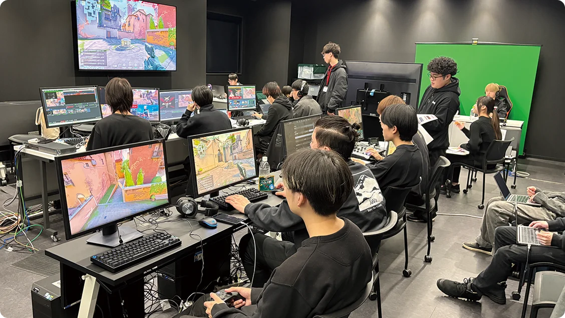 日本初のe-sportsの教育機関である滋慶学園COMグループの実績と、業界とのつながりを活かし、在学中から大会やイベントの企画・運営といった現場での経験を数多く積むことができます。e-sports 業界がどのように形成されているか、どのように運営されているかを企業と実践的に学び、マネジメントに必要な企画力・集客力・運営力を持った人材を育成します。