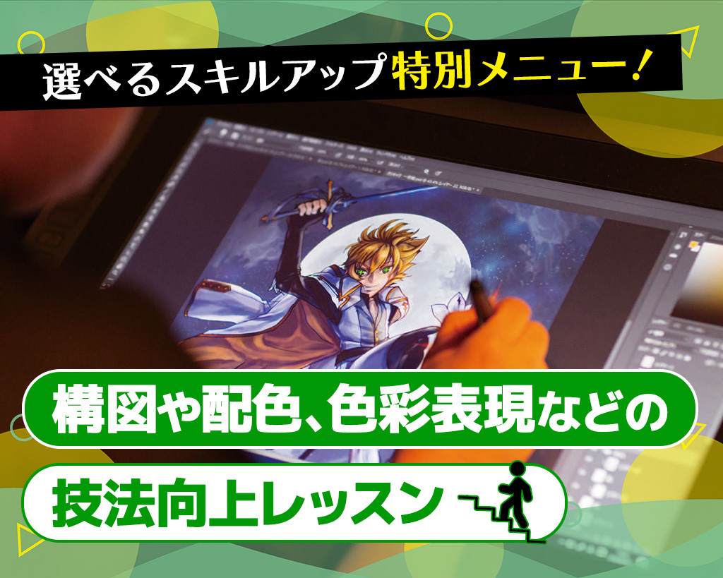 デザイン・イラストに加えて、クライアントの要望や希望に添ったコンセプトの立て方、多彩な表現方法、その価値を伝えるプレゼンテーション能力などを身につけ、人々の心に響き行動を促すようなデザインを生み出すグラフィックデザイナーを目指します。色の選び方や組み合わせ方、平面構成など、文字、写真、イラストを使って印刷物(ポスター、フライヤー)を制作する技術を基礎から身につけます。